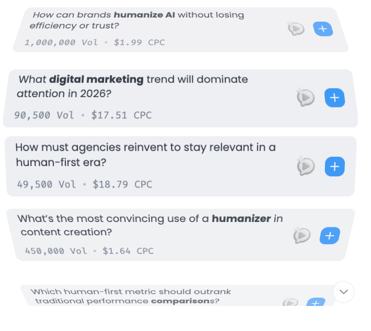 Generate scripts or interview questions instantly based on your keywords. Great for SEO content.